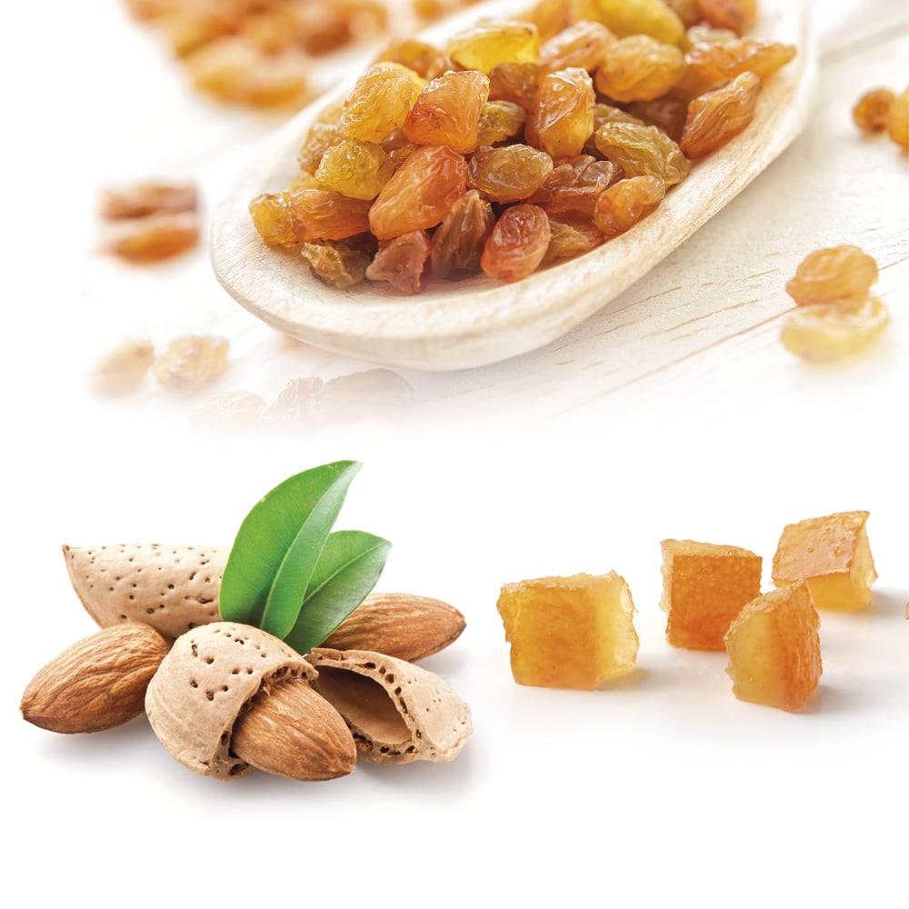 Questo Panettone oltre alle caratteristiche del Classico, è coronato con glassa, granella di zucchero e mandorle sgusciate. All’interno troviamo uvetta sultanina e arancia semi-candita, un’irresistibile tentazione.
